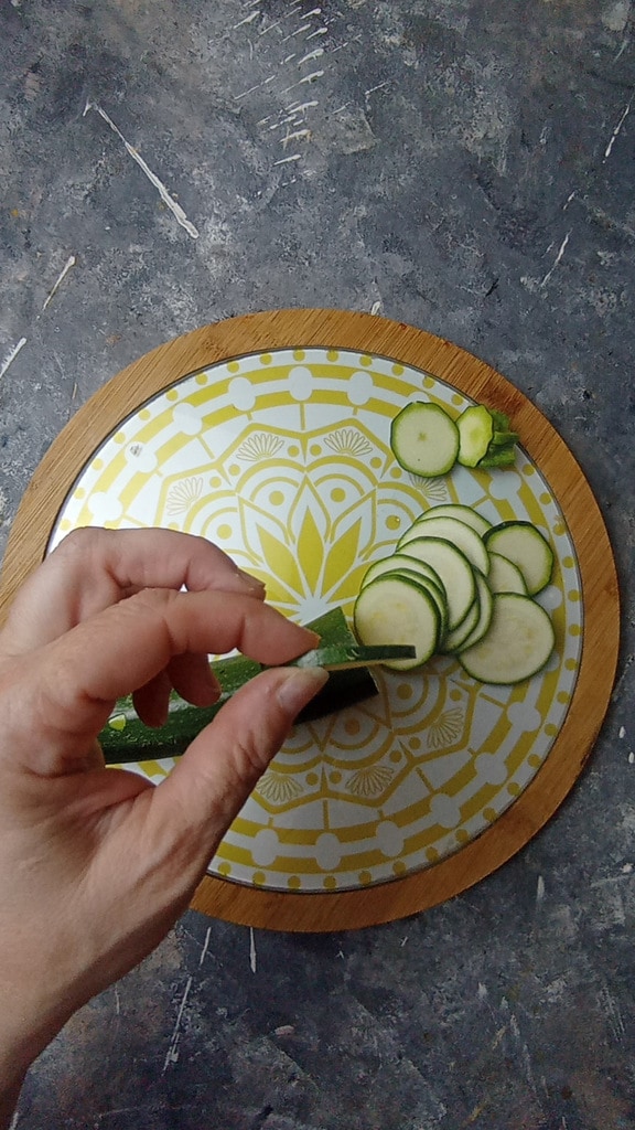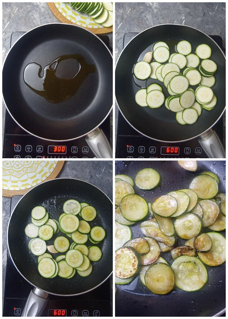 Voeg de courgette toe, voeg een snufje zout toe en kook 10 minuten op laag vuur, vaak roerend om ze aan alle kanten te kleuren.
