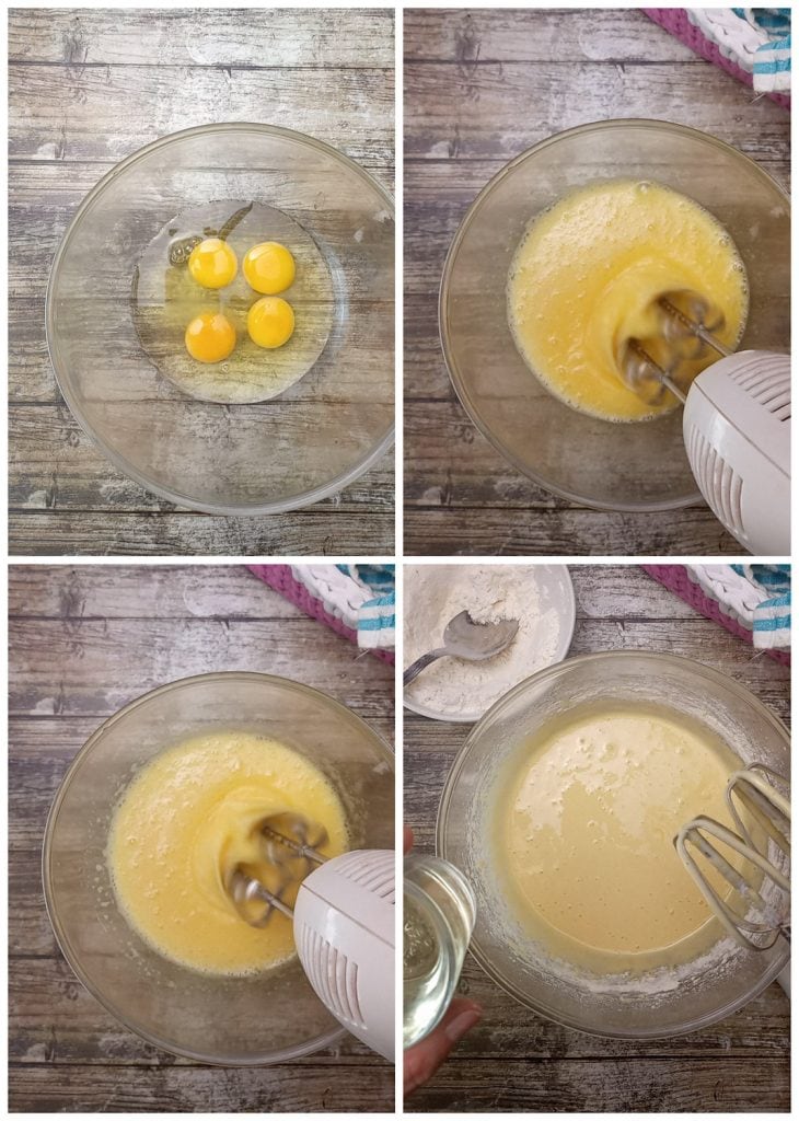 Voeg vervolgens 4 eetlepels bloem toe en mix verder met de elektrische garde.