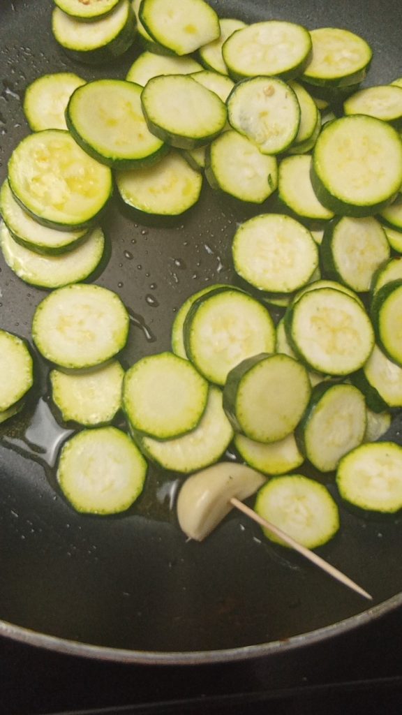 Was, trim en snijd de courgettes in niet te dunne schijfjes.
