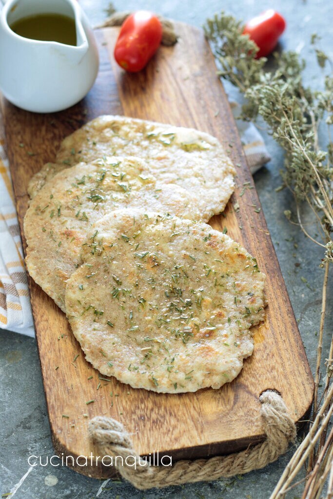 Bak op laag vuur de mini broodjes 2-3 minuten per kant en wanneer ze nog warm zijn, bedruppel ze lichtjes aan de oppervlakte met een eerder bereide emulsie van olie en bieslook.