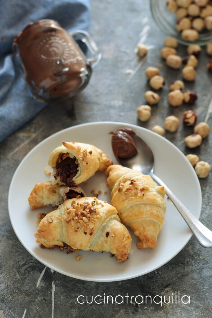 Croissants met Nutella en dubbele bladerdeeg, als je op zoek bent naar een gemakkelijk en smakelijk dessert, dan is dit idee echt iets voor jou.