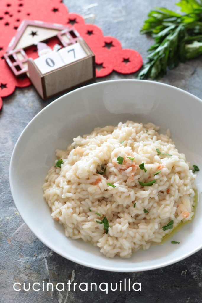 Risotto met langoustines en prosecco idee voor kerstavond of kerstlunch, heerlijk en delicaat hoofdgerecht met een onweerstaanbare geur, heel eenvoudig te maken. De basis is die van de klassieke risotto, maar in plaats van witte wijn heb ik heerlijke prosecco gebruikt. De langoustines, vers of ontdooid afhankelijk van uw mogelijkheden om ze te vinden, heb ik eerst kort aangebakken en daarna bijna aan het einde van het recept toegevoegd. Voor de bouillon heb ik een fumet gemaakt met de koppen van de langoustines en groenten. Hieronder geef ik u enkele ideeën voor het maken van heerlijke hoofdgerechten voor de feestdagen, terwijl ik verderop de meest voorkomende vragen over dit recept zal beantwoorden.