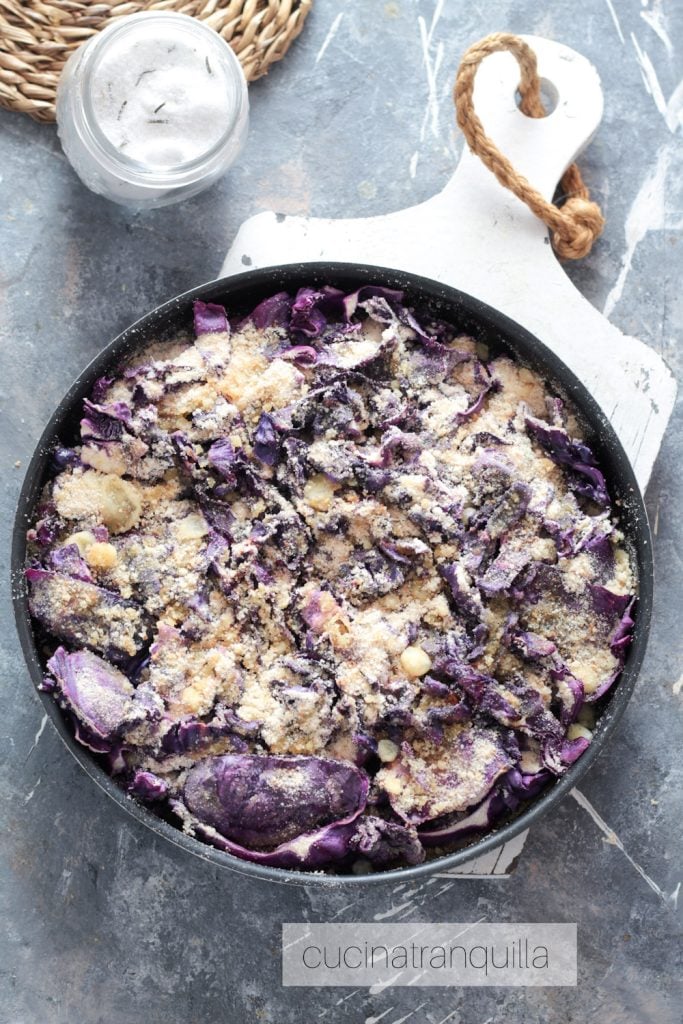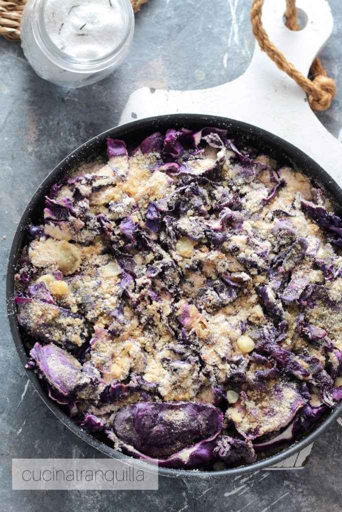 Rode kool gegratineerd in de magnetron, een herfstbijgerecht van ongeëvenaarde heerlijkheid.