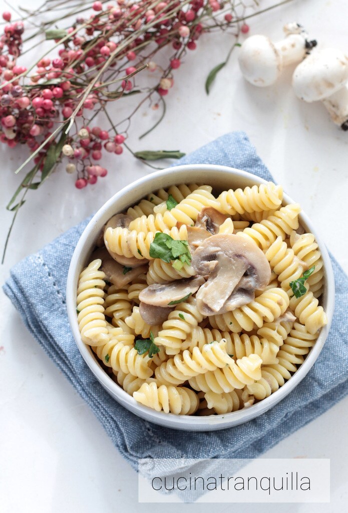 Romige fusilli met champignons
