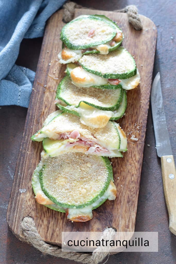Ronde courgettes gevuld met gekookte ham en scamorza, een gemakkelijk en heerlijk recept om in de oven te maken.