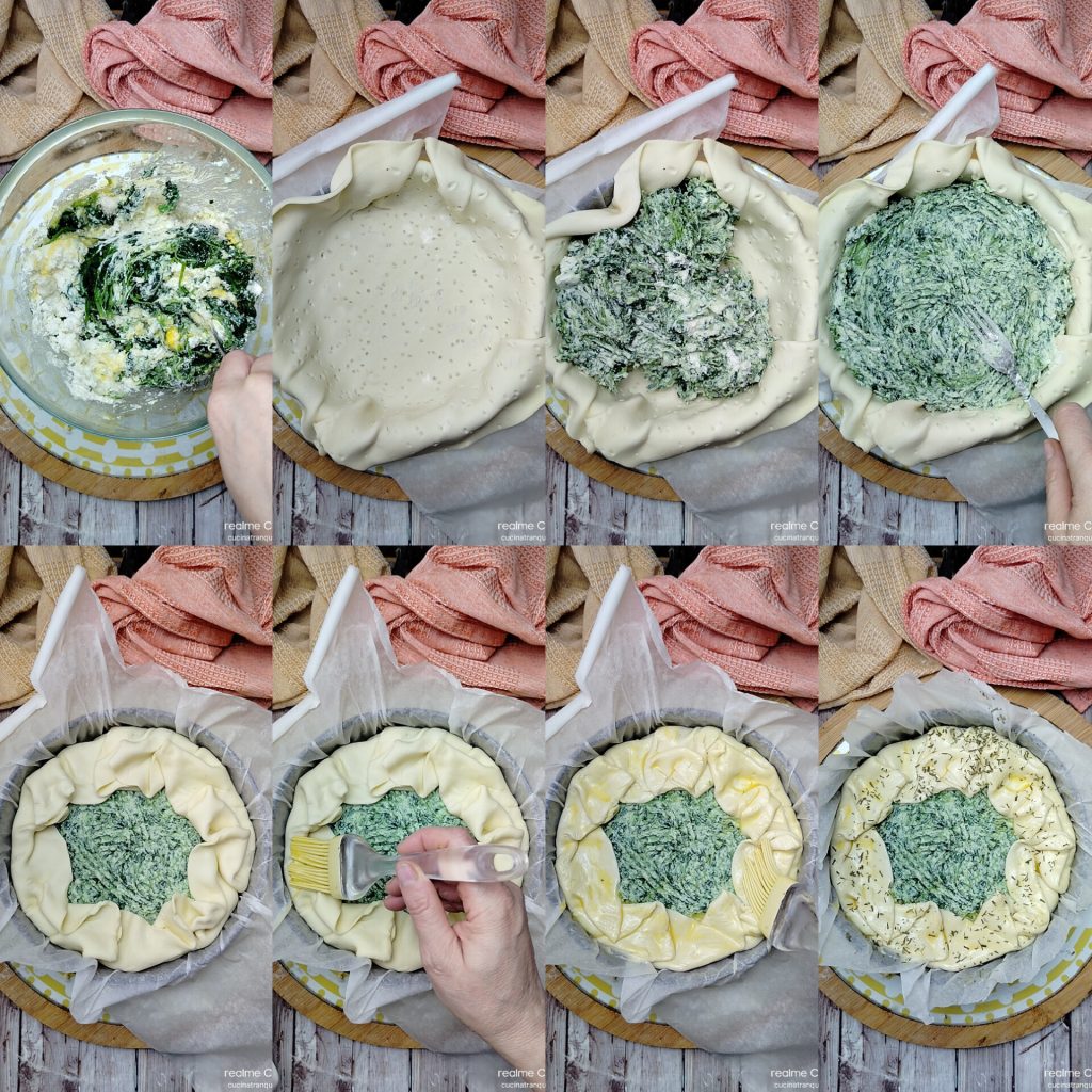 Om de Rustieke taart met friarielli en ricotta te maken, maak je eerst de friarielli schoon, was je ze en kook je ze in veel gezouten water, goed uitlekken en laten afkoelen. Knijp ze, indien nodig, om te voorkomen dat ze te veel water vrijgeven tijdens het koken. Meng ze in een kom met de ricotta, de eieren, een snufje fijn zout en de geraspte kaas.