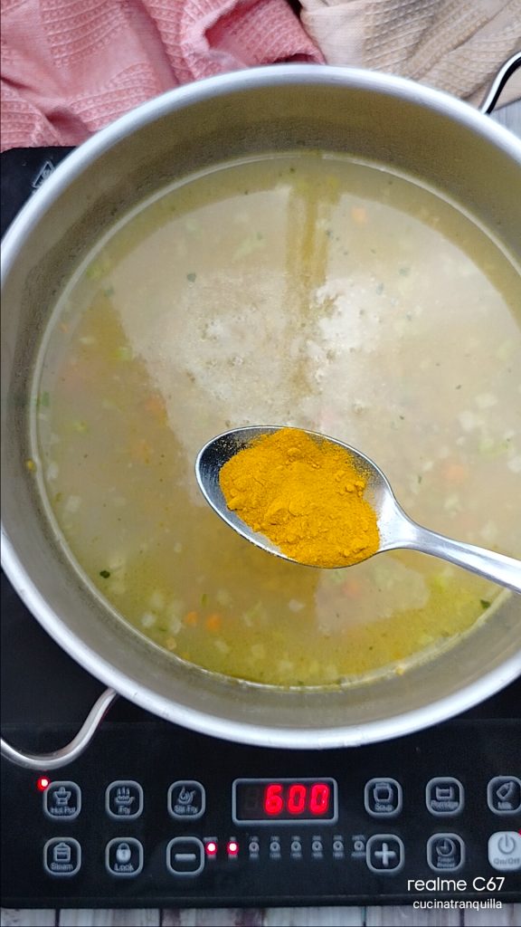 • Om de Soep van linzen en kurkuma te maken, verwarm eerst de olie en voeg na een paar seconden een beetje soffritto toe. Je kunt ook een verse mix van bleekselderij, wortel en uien gebruiken, die al in blokjes zijn gesneden nadat je ze hebt schoongemaakt.