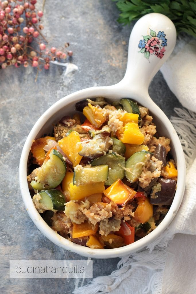 Zanderige groenten in de pan, een makkelijk en snel recept om zomergroenten in een gratinversie te presenteren, maar dan in de pan, nog lekkerder omdat ze verrijkt zijn met geraspte kaas.