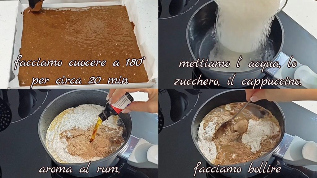 Doe het water, de suiker, cappuccino, rum aroma in een steelpannetje en breng aan de kook.