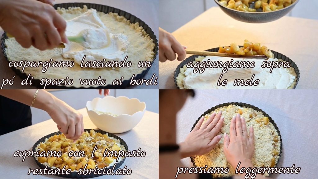 De bereiding van de appel en ricotta kruimeltaart is heel eenvoudig en snel, bekijk de video HIER.