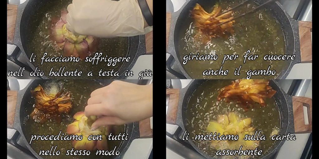 Een grote klassieker van de Italiaanse keuken die als voorgerecht moet worden geserveerd. Een zeer eenvoudig recept te maken met alleen artisjokken en olie om te frituren. Artisjokken worden in veel recepten gebruikt en elke regio heeft zijn eigen typische recept, bijvoorbeeld in Napels maken ze de artisjokken affogati alla napoletana, in Rome Artisjokken alla romana, in Sicilië de artisjokken ammuddicati, in Bari de Artisjokken, rijst en aardappelen, enz. Ik moet zeggen dat ik ze op alle manieren lekker vind, maar gefrituurd zo in de olie worden ze knapperig en smakelijk.