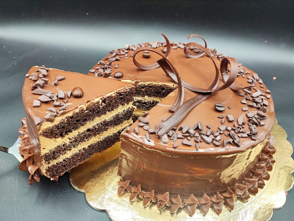 Voor de bereiding van de chocoladetaart met koffieroom kijk naar de video HIER.