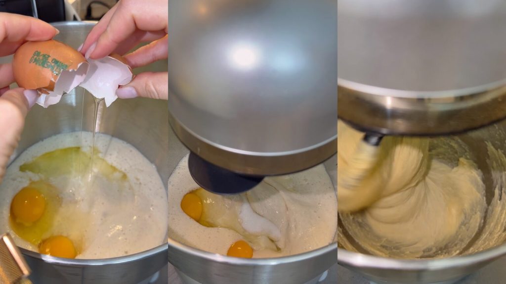 ik voeg de eieren toe en begin ongeveer 15 minuten te kneden.