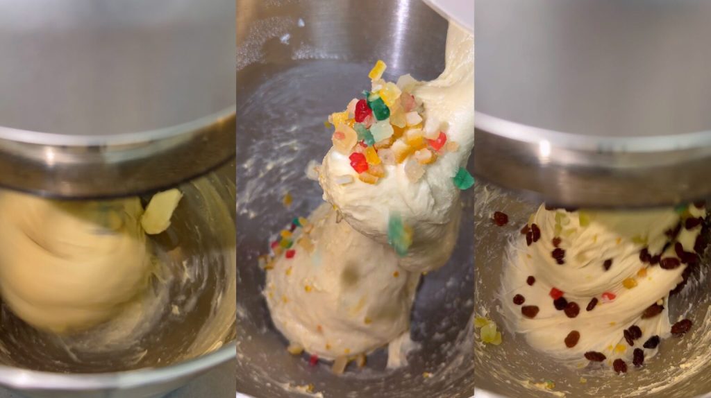 Als laatste voeg ik gekonfijte vruchten en rozijnen toe.