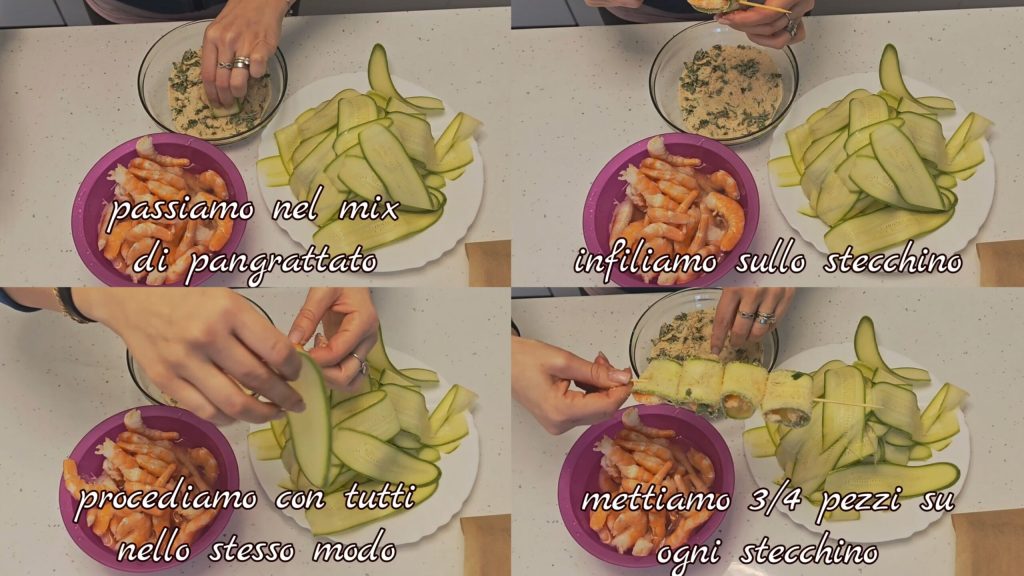 De bereiding van de courgette en garnalen spiesjes is heel eenvoudig, bekijk de video HIER.