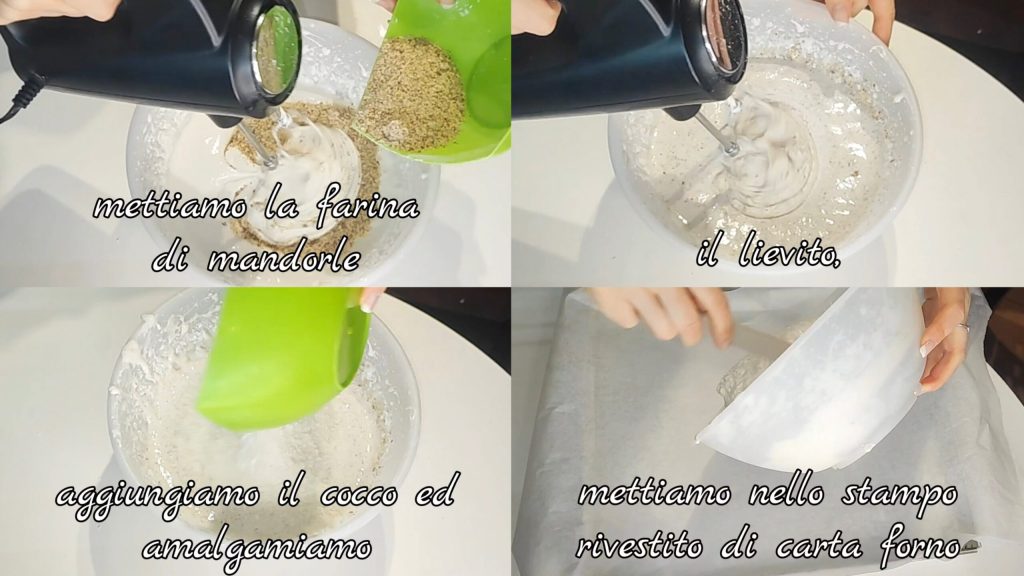 Voor de bereiding van de dacquoise taart met kokos en bladerdeeg zonder eieren bekijk de video HIER.