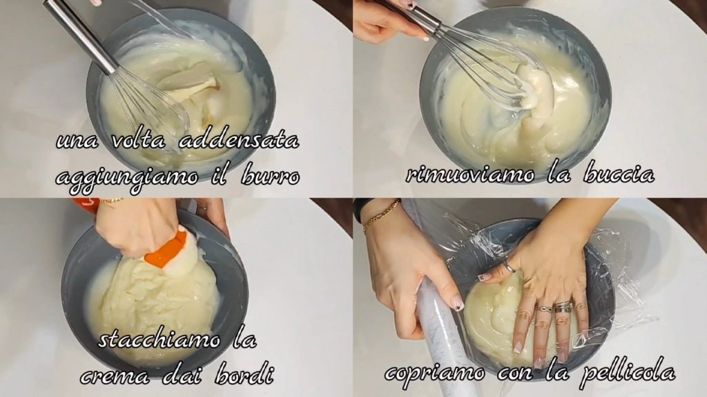 Zodra het is ingedikt, voeg de boter toe, verwijder de schil, dek af met plastic folie
