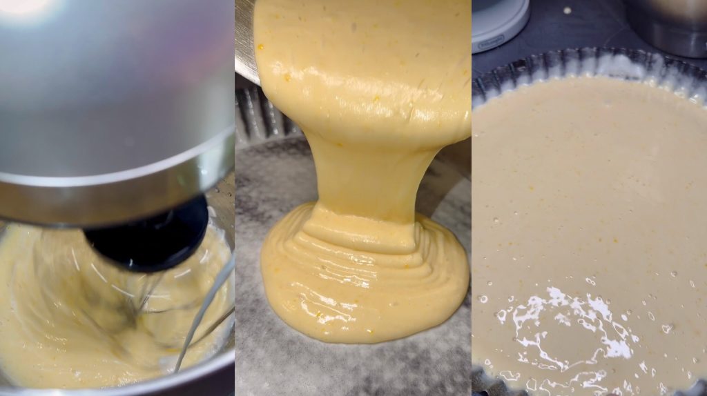 Houd een deel van het beslag apart en bak dit in een kleinere vorm (we gebruiken dit later voor de mimosa-decoratie). Bak alles op 180°C gedurende ongeveer 20 minuten. Laat volledig afkoelen.