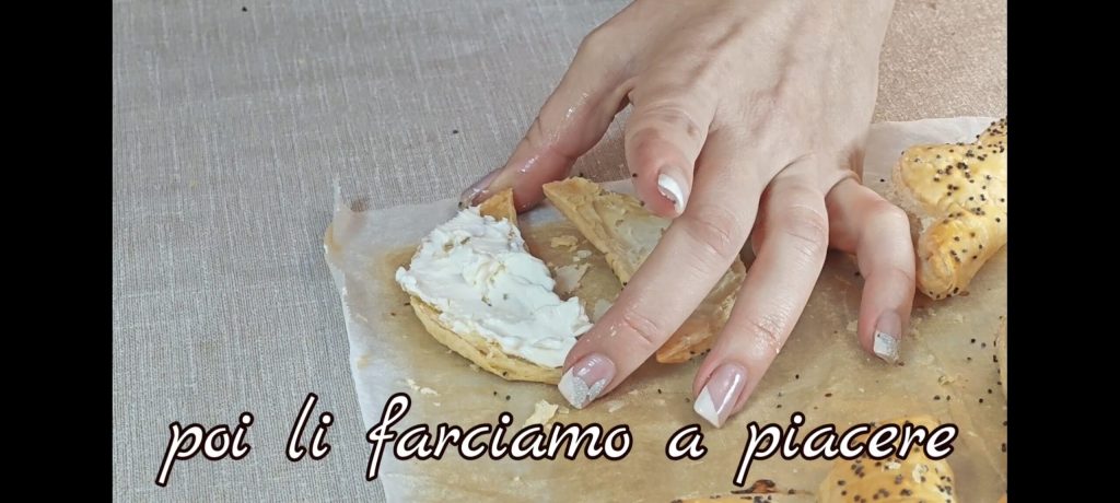 Als we ze wat dikker willen, vouwen we ze in plaats van te snijden dubbel. Bestrijk ze met een beetje melk en strooi er wat maanzaad over. Bak ze ongeveer 20 minuten op 180°C.