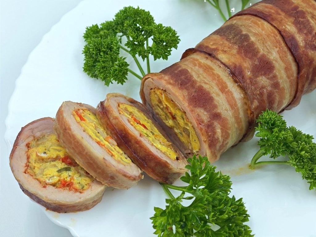 Een perfecte rol voor de kerstperiode en vooral voor het kerstdiner of het oudejaarsdiner! Deze keer wilde ik een andere rol maken die we zowel als voorgerecht als hoofdgerecht kunnen serveren! Ik gebruikte varkenshaas als basis en koos voor de vulling een omelet met groenten, omwikkeld met spek. Ik vertel jullie dat het echt GODDELIJK was! Dus als je je gasten wilt verrassen met iets anders, probeer dan dit recept!
