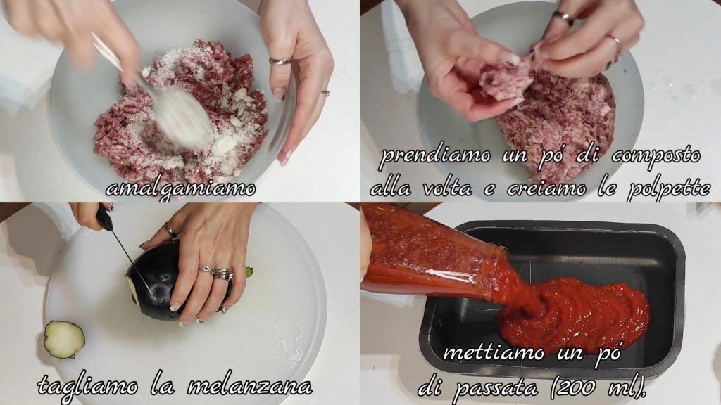 Voor de bereiding van de gehaktballen en aubergines in de oven zonder eieren, bekijk de video HIER.