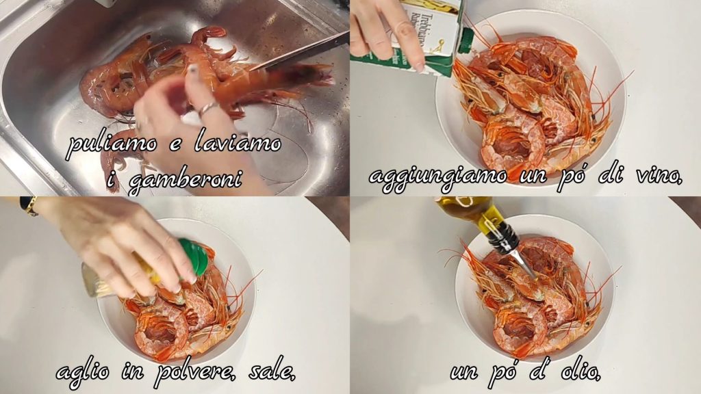 Een heerlijk recept dat we in ons feestmenu kunnen opnemen als hoofdgerecht vergezeld van een willekeurige groentegarnituur! Tegenwoordig is de heteluchtfriteuse erg populair geworden in Italië en wordt door iedereen gebruikt omdat het erg handig is en ons een gezondere en lichtere bereiding biedt. De geroosterde garnalen kunt u naar smaak op smaak brengen met citroensap, een sausje van olijfolie en knoflook of andere kruiden naar uw smaak. Voor een compleet vismenu kunt u als voorgerecht Gemarineerde zalm carpaccio serveren, als eerste gang de Mezze maniche met scampi en als dessert de Chocolade kerststronk!