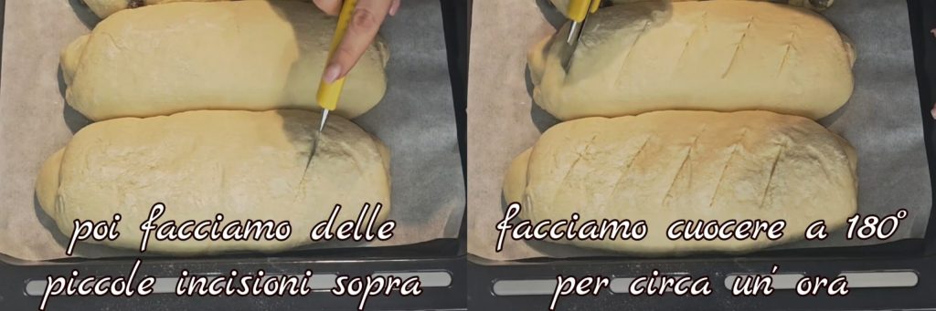 dan maken we kleine insnijdingen bovenop en bakken we op 180° gedurende ongeveer een uur.