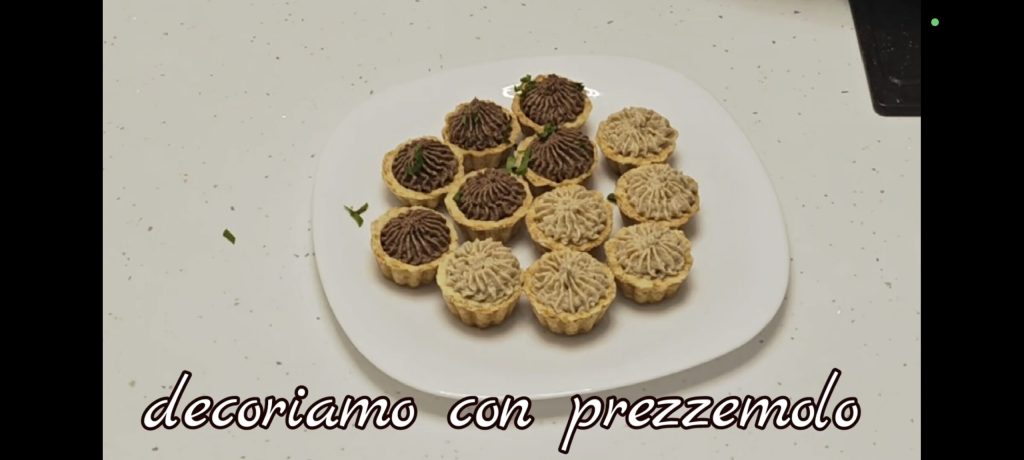 Zodra ze klaar zijn, halen we ze eruit en gaan we op dezelfde manier verder met de anderen. Als de mandjes goed afgekoeld zijn, verwijderen we voorzichtig het overtollige deeg aan de randen en vullen we ze met hartige crèmes naar keuze.