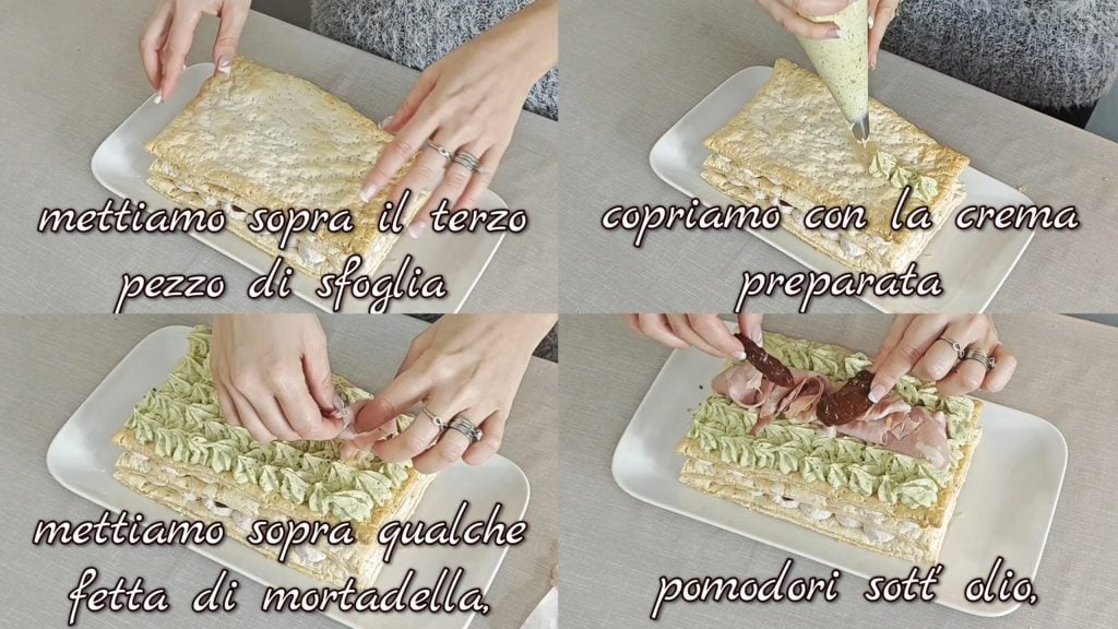 De voorbereiding van de hartige millefeuilles taart is zeer eenvoudig, bekijk de video HIER.