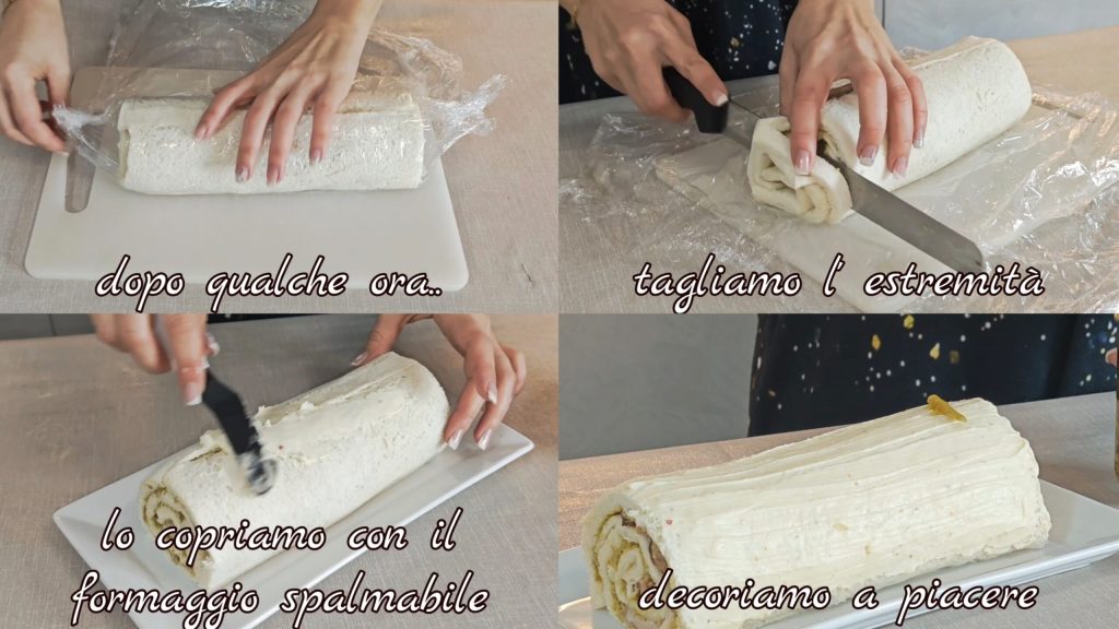 Na een paar uur snijden we de uiteinden eraf, bedekken met roomkaas en decoreren naar wens.