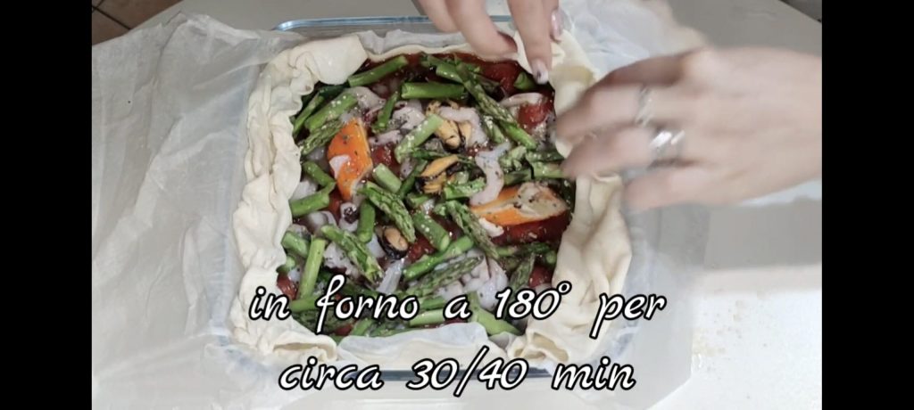 Een eenvoudig en snel recept om als voorgerecht te bereiden om ons vismenu compleet te maken. U weet inmiddels dat ik in de lente overal asperges in stop, dus heb ik ervoor gekozen om ook een combinatie te maken met de zeevruchten om vervolgens alles in bladerdeeg te doen en een hartige taart te maken die bij elke gelegenheid kan worden genoten. Een recept dat we naar wens kunnen aanpassen!