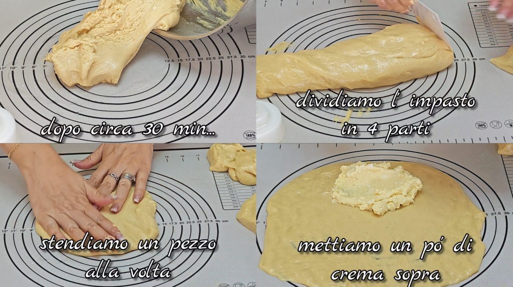 Na het rijzen delen we het deeg in 4 delen.