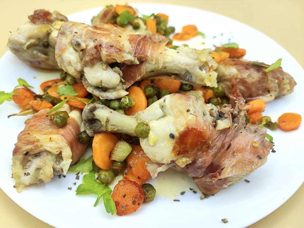 De bereiding van de kip met erwten en wortelen is heel eenvoudig en snel, bekijk de video HIER.