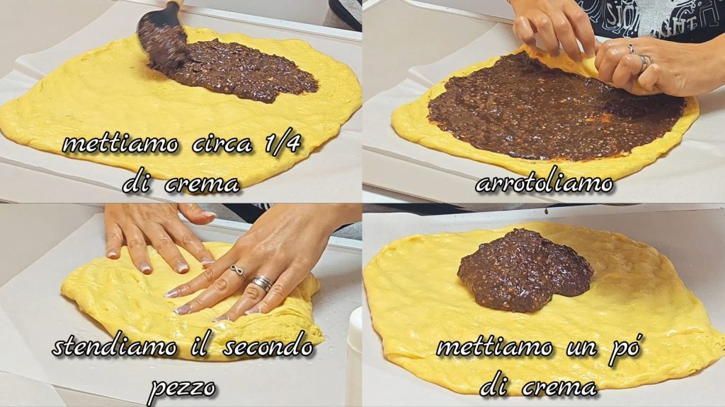 smeer er een kwart van de walnoten- en cacaocrème op en rol op.