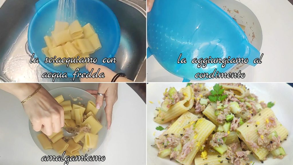 Voor de bereiding van de koude pasta met tonijn en citroen bekijk de video HIER.
