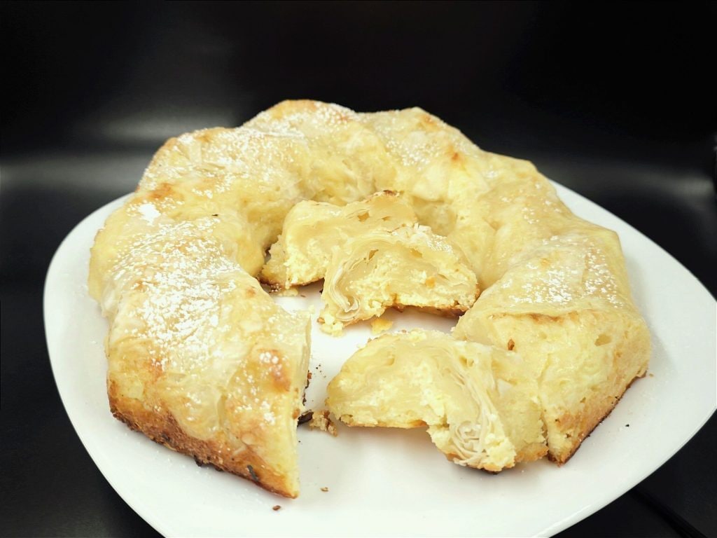 Een ongewone kranscake gemaakt met filodeeg en een room van ricotta, suiker, yoghurt, eieren en aroma’s. Een eenvoudig en zeer snel recept om in slechts enkele minuten te bereiden. Een dessert om van te genieten als tussendoortje, snack, dessert of op elk moment van de dag wanneer we er zin in hebben.