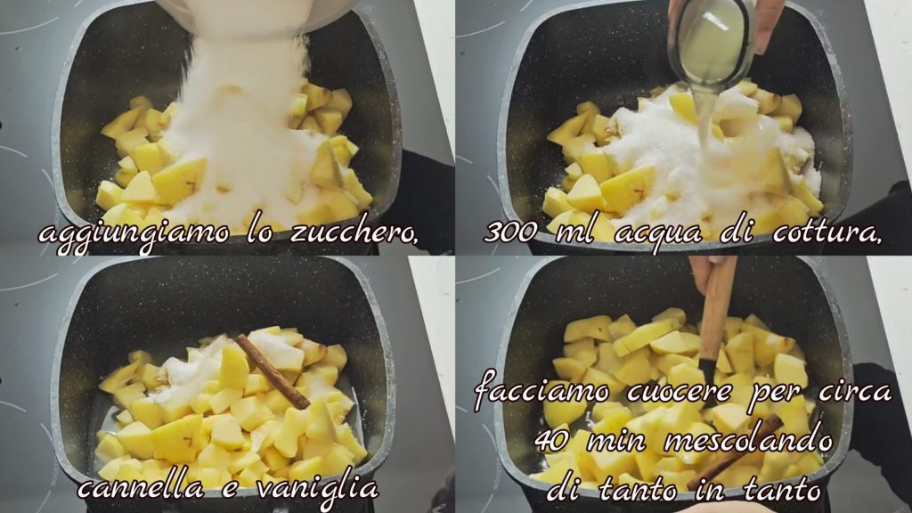 we voegen de suiker, 300 ml kookwater, een beetje kaneel, vanille toe en koken het ongeveer 40 minuten terwijl we af en toe roeren.