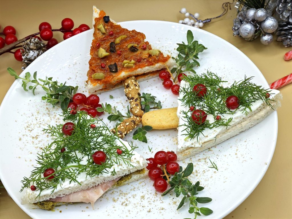 Als je in een crisis zit en een voorgerecht nodig hebt dat je op het laatste moment redt, zijn deze boompjes perfect. Ze kunnen worden gevuld met mousse, smeerbare crèmes, pesto, enz., afhankelijk van je smaak! Ik heb ze versierd met wilde venkel, rode bessen en roze peper, een beetje alsof het echt kerstbomen zijn. Een zeer eenvoudig en snel recept dat we in deze feestdagen kunnen bereiden en als voorgerecht of aperitief kunnen serveren!