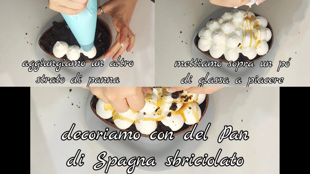 De voorbereiding van het met chocolade gevulde ei met room en biscuit is heel eenvoudig en snel; bekijk de video HIER.