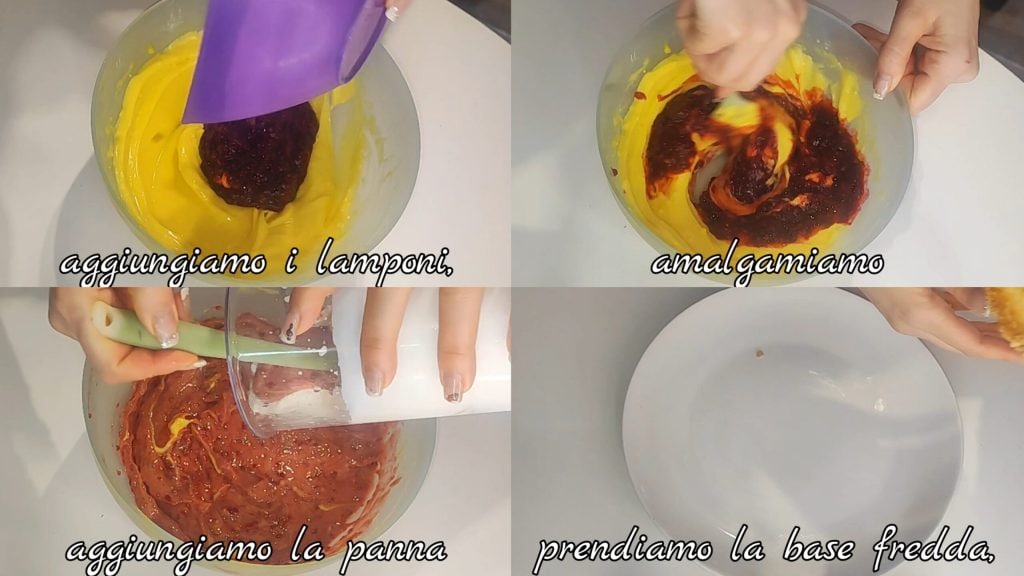 Voor de bereiding van de mimosa taart met frambozen bekijk de video HIER.
