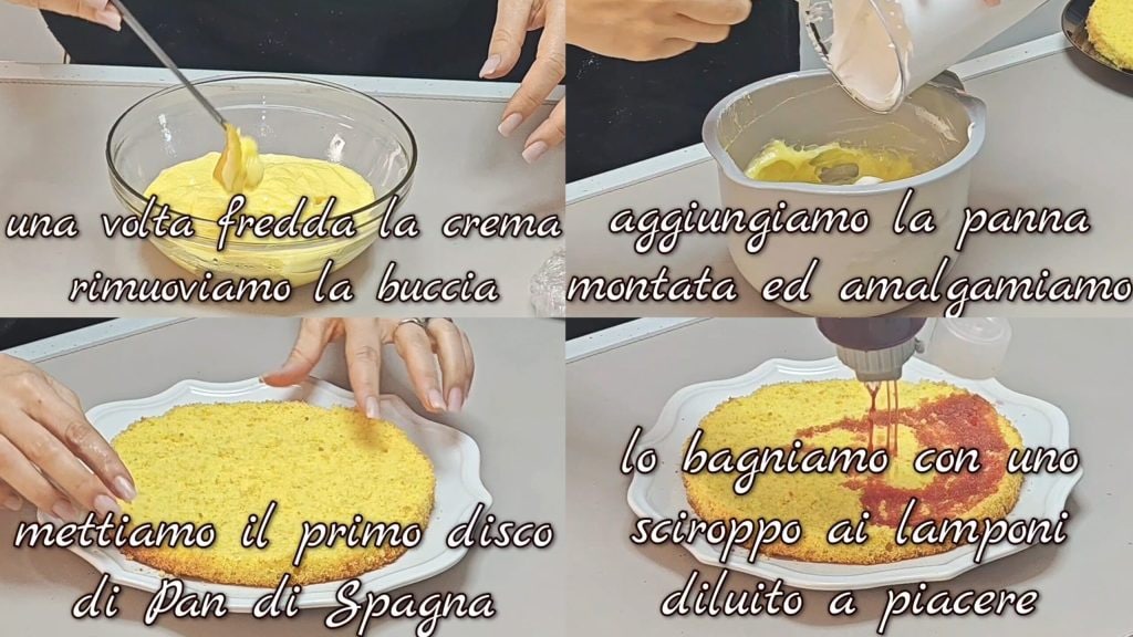 Voor de bereiding van de mimosa taart met frambozen bekijk de video HIER.