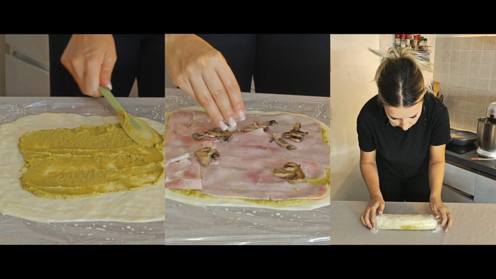 Voor de bereiding van de Mozzarella Rol met Erwten, Gekookte Ham en Champignons bekijk de video HIER.