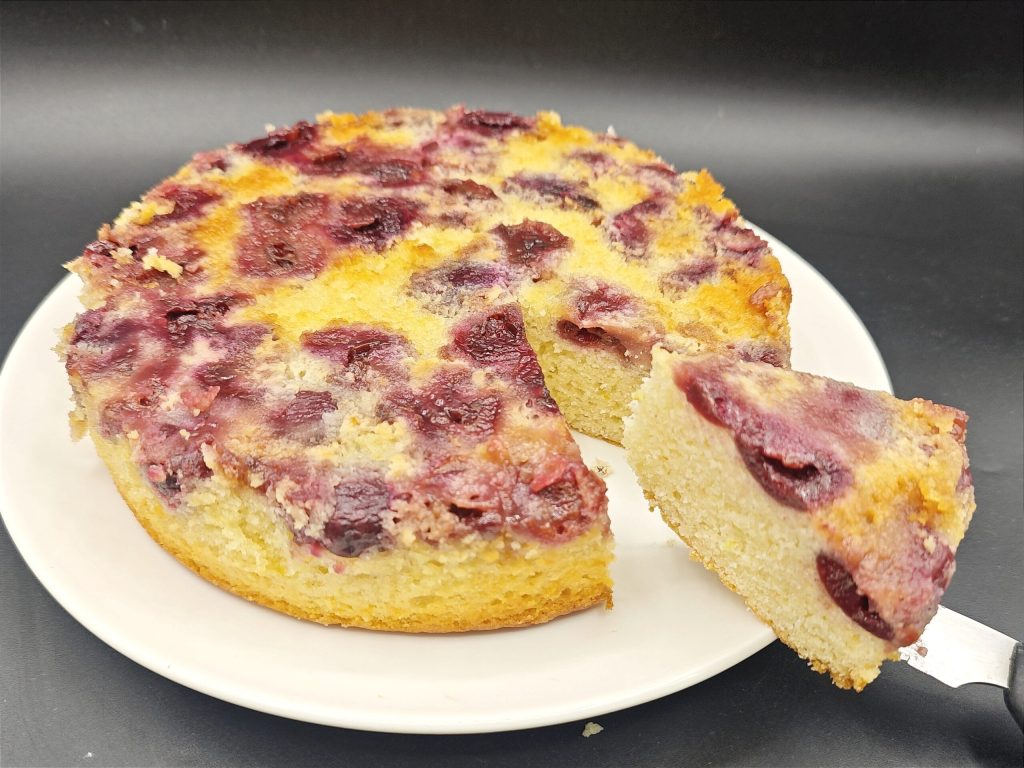 Een taart gemaakt zonder eieren, ook al zou je dat niet zeggen gezien het uiterlijk en de smaak 😁. Ik heb ervoor gekozen om het met kersen te maken omdat we midden in het seizoen zitten en ik ben er dol op, maar als je dat wilt, kun je ze gerust vervangen door ander fruit naar keuze. Een heel eenvoudig en snel recept om te maken dat voor elke smaak geschikt is en dat geserveerd kan worden van ontbijt tot dessert.