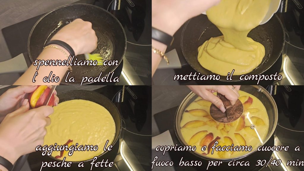 De bereiding van de perzikentaart in de pan is heel eenvoudig en snel, bekijk de video HIER.