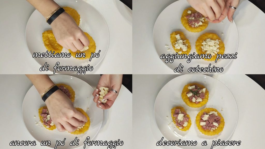 Voor de bereiding van de polentetaartjes met cotechino kijk de video HIER.