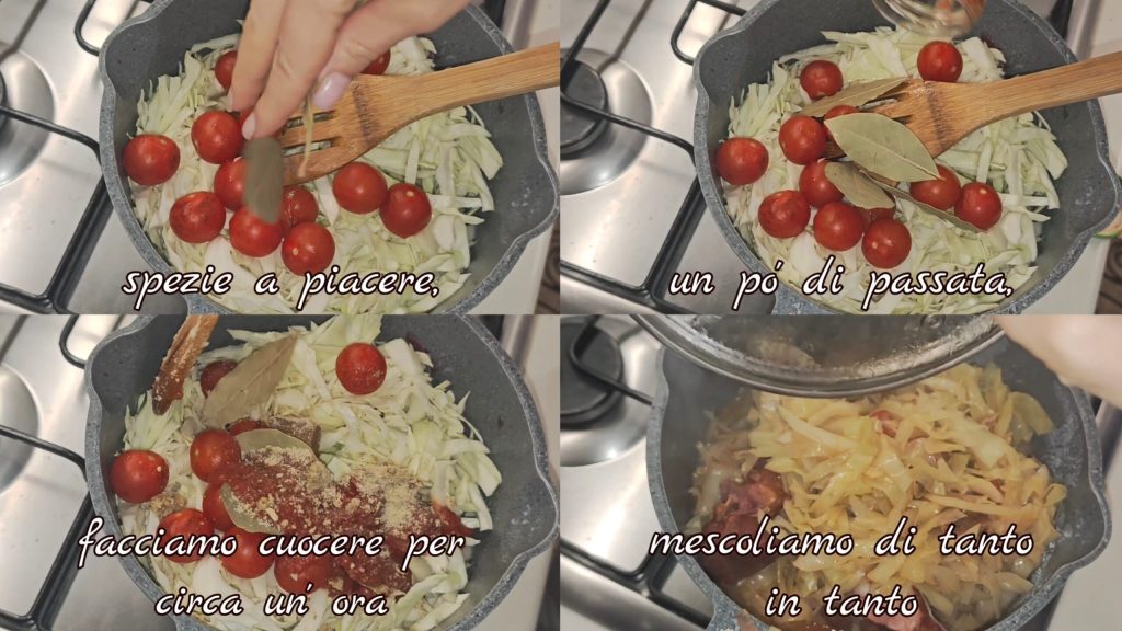 kruiden naar smaak, een beetje passata en laat het ongeveer een uur koken. Roer af en toe.