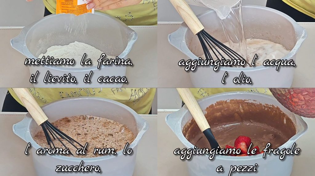 Voor de bereiding van de vegan chocolade en aardbei cake: zachte en heerlijke cake bekijk de video HIER.