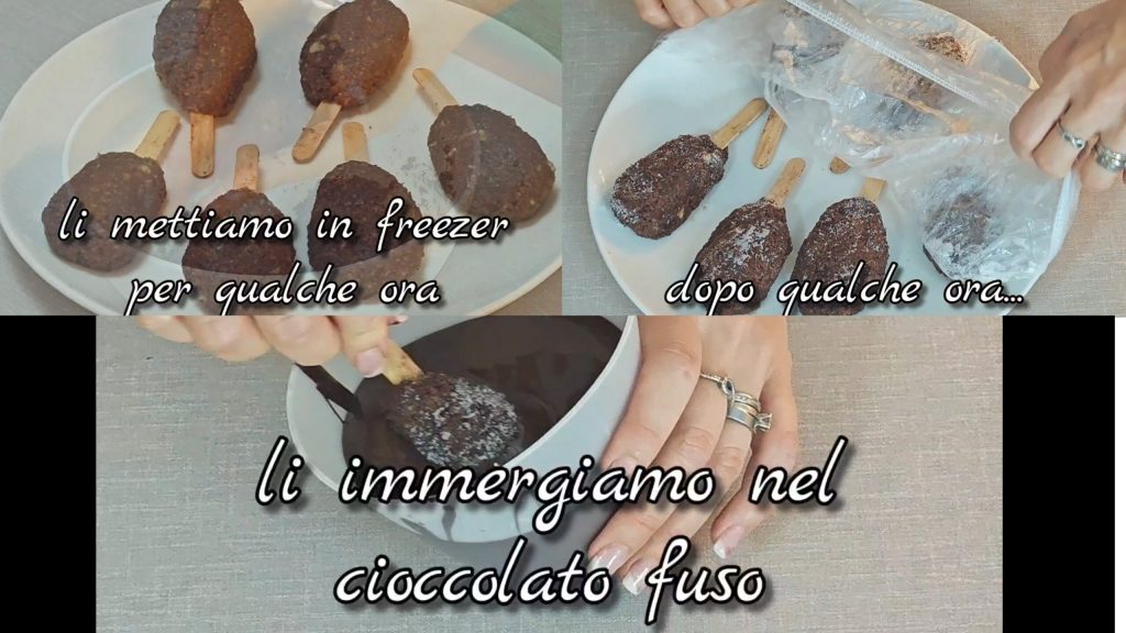 Zodra ze klaar zijn, plaatsen we ze een paar uur in de vriezer en dompelen we ze vervolgens in gesmolten chocolade voordat we ze weer in de vriezer plaatsen tot gebruik!