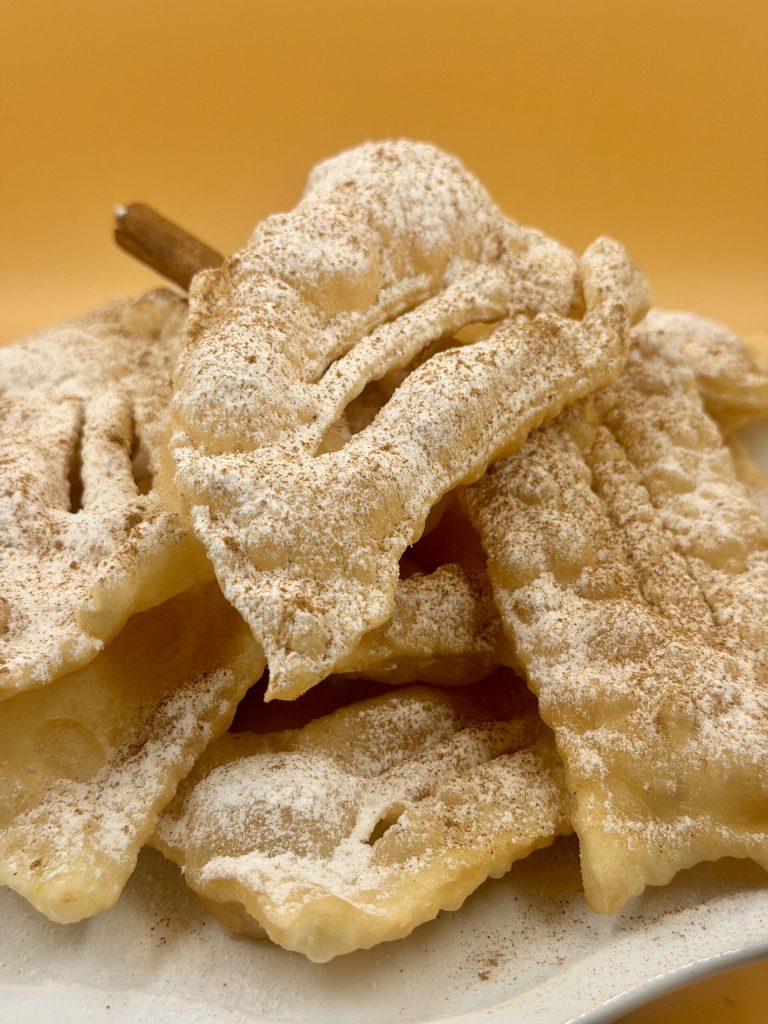 Vegan kaneel chiacchiere krokant, knapperig en zeer geurend, licht als lucht en onweerstaanbaar bij de eerste hap.