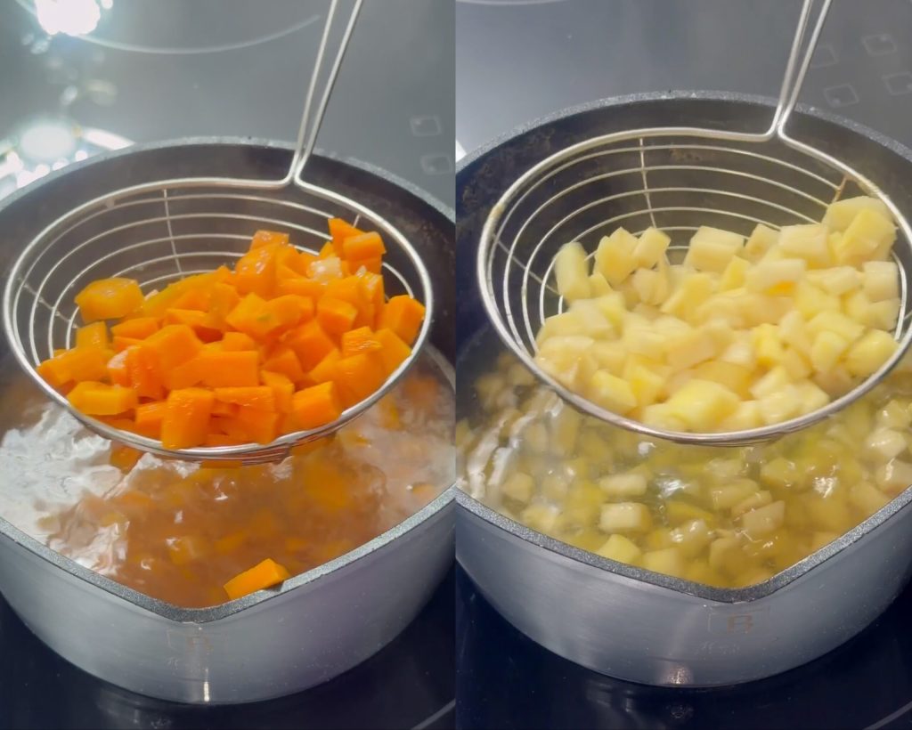 • Doe de aardappelen, erwten, wortelen en knolselderij